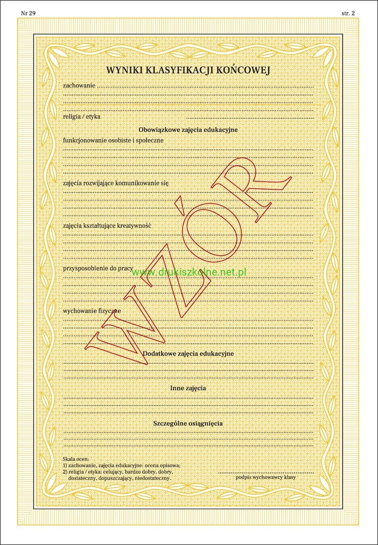 MEiN-I/29/2- formularz świadectwa szkolnego (numerowane)