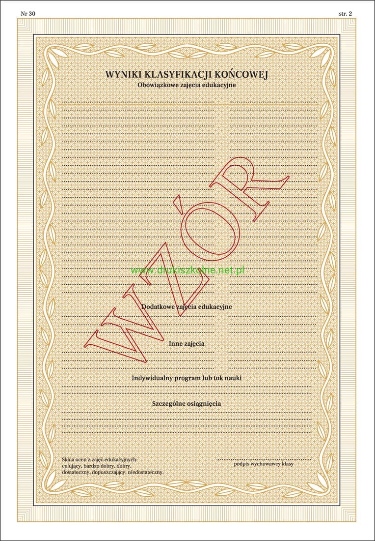 MEiN-I/30/2 - formularz świadectwa szkolnego (numerowane)