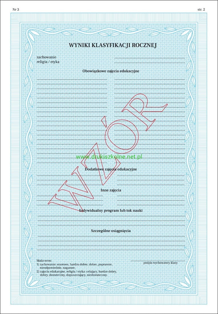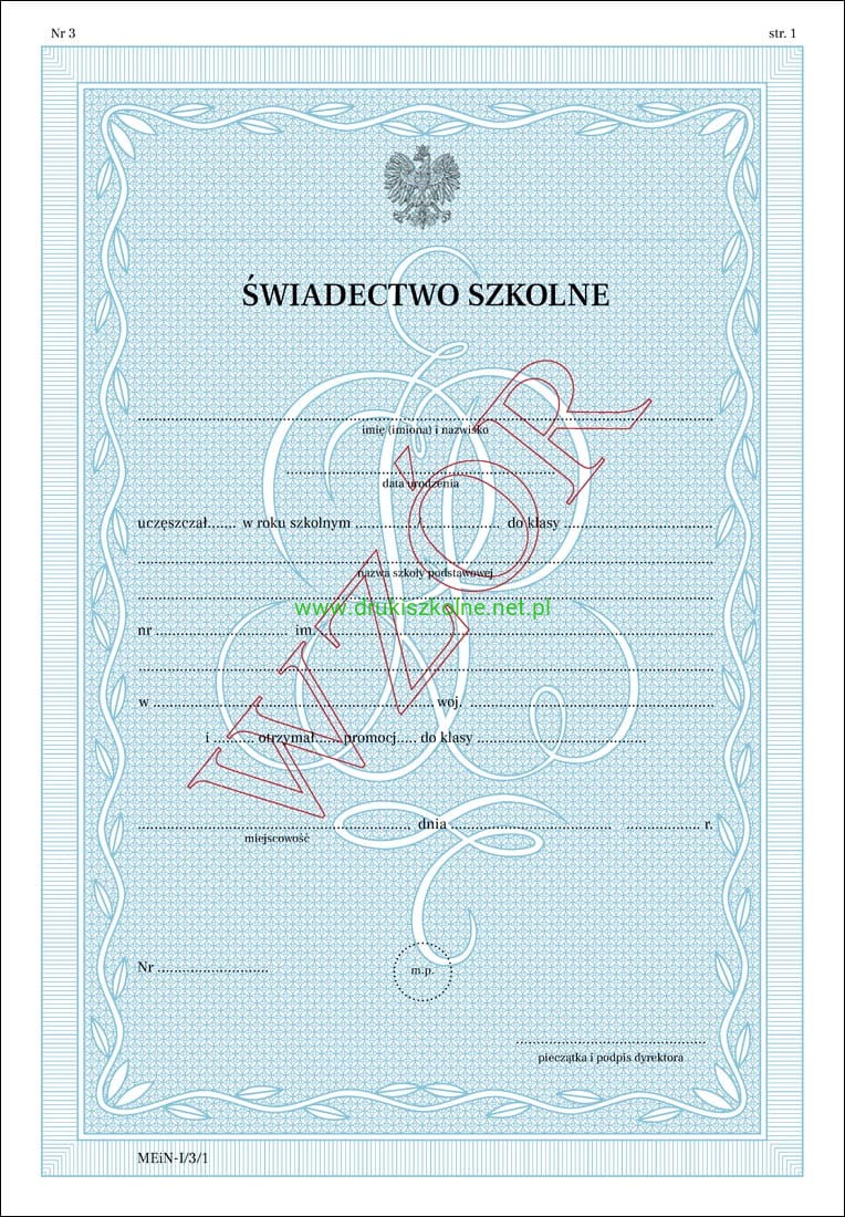 MEiN-I/3/1 - formularz świadectwa szkolnego