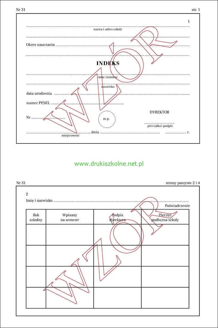 MEiN-I/31/2 Indeks dla słuchaczy szkoły dla dorosłych