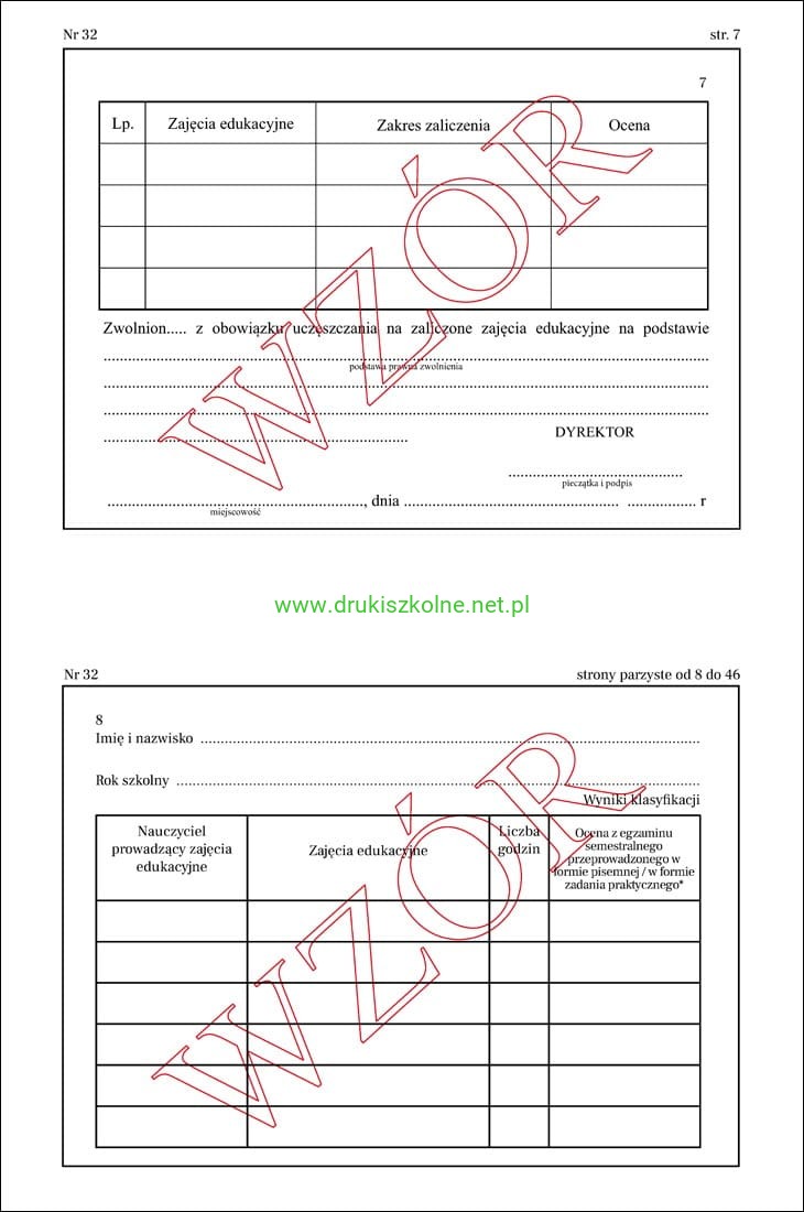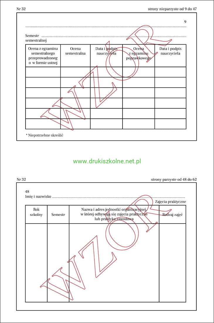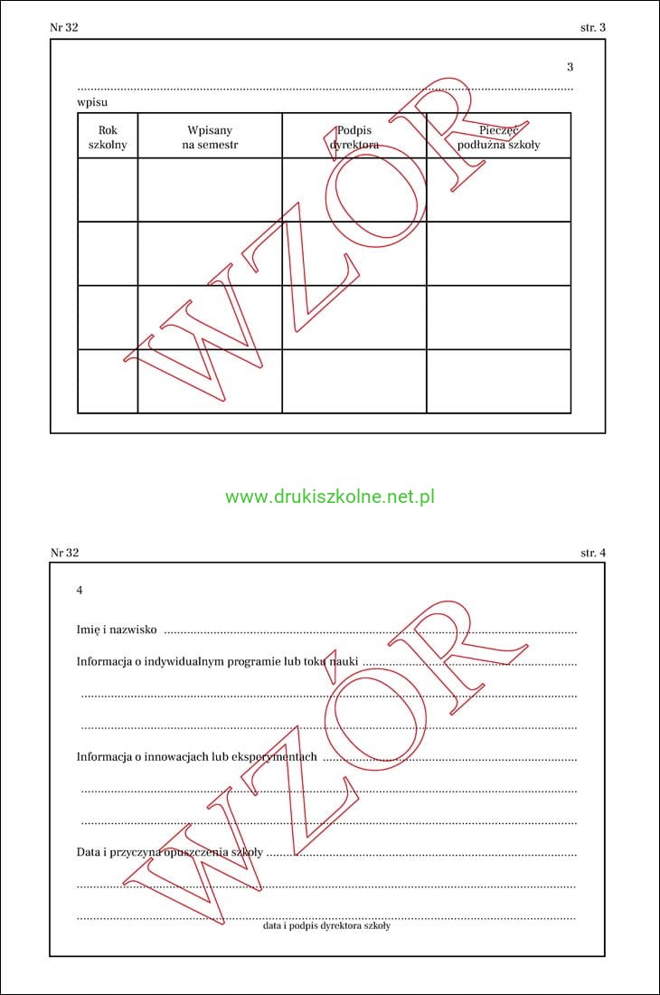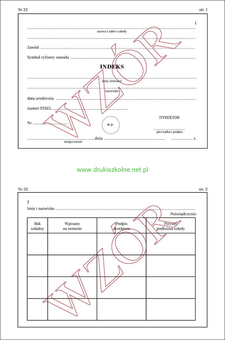 MEiN-I/32/2 Indeks dla słuchaczy szkoły policealnej i branżowej szkoły II stopnia
