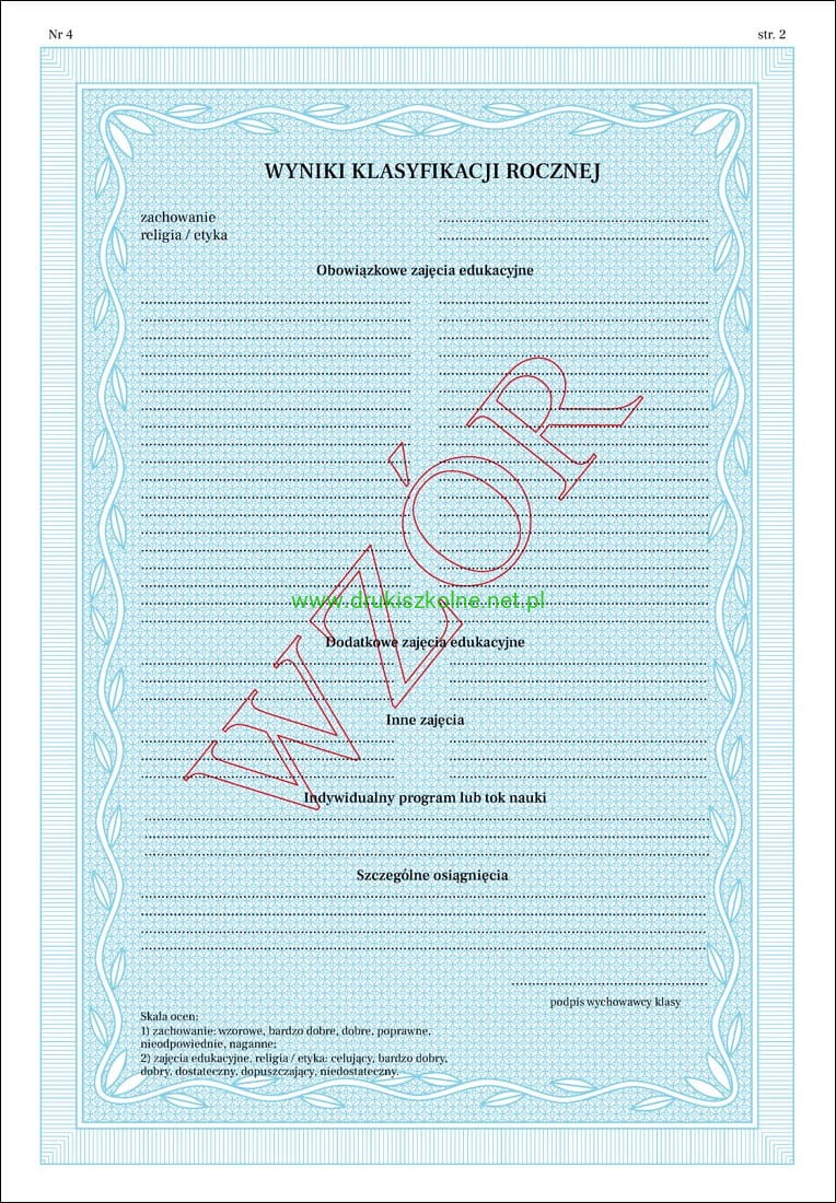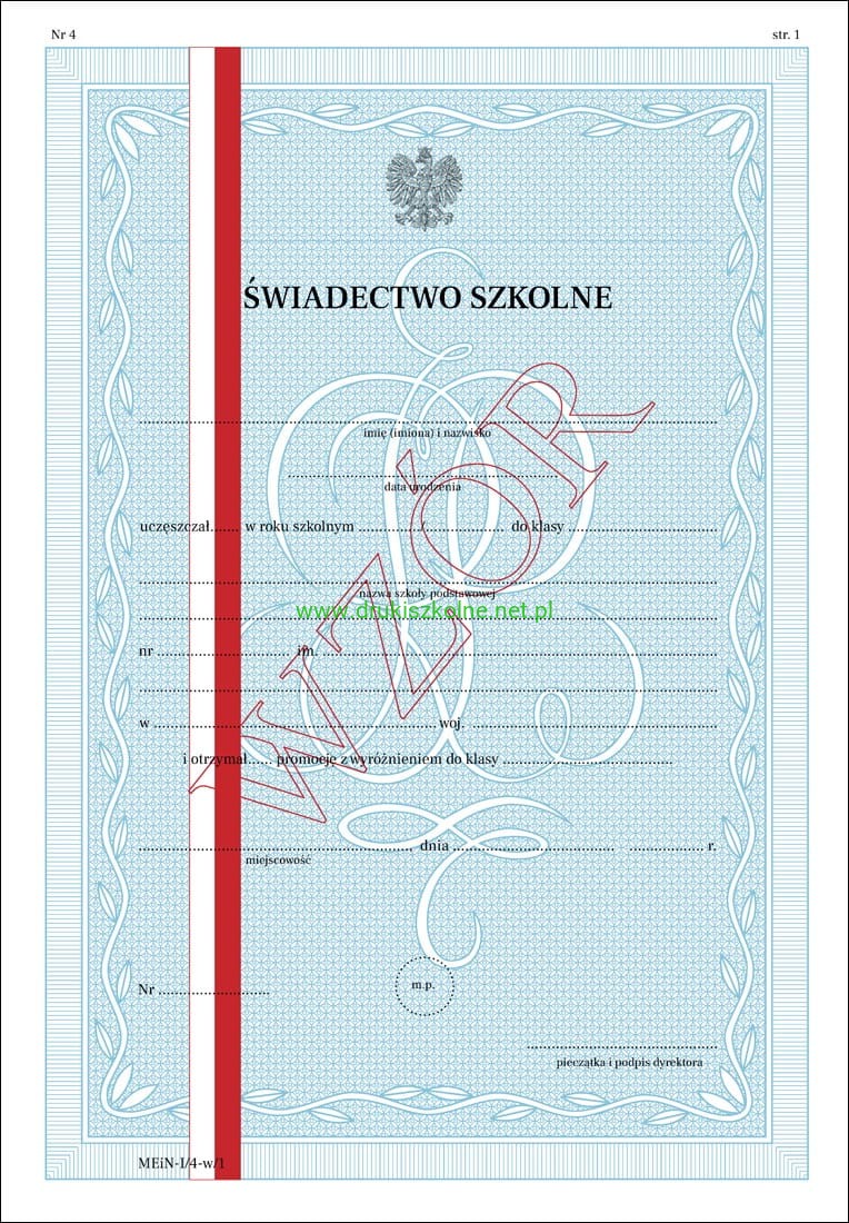 MEiN-I/4-w/1 - formularz świadectwa szkolnego