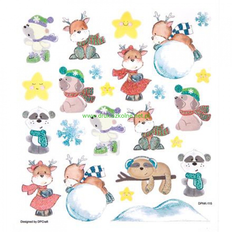 NAKLEJKI Z BROKATEM WESOŁE ZWIERZĄTKA 24szt.