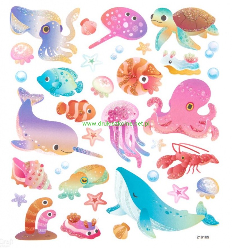 NAKLEJKI Z BROKATEM ZWIERZĘTA MORSKIE 34szt.