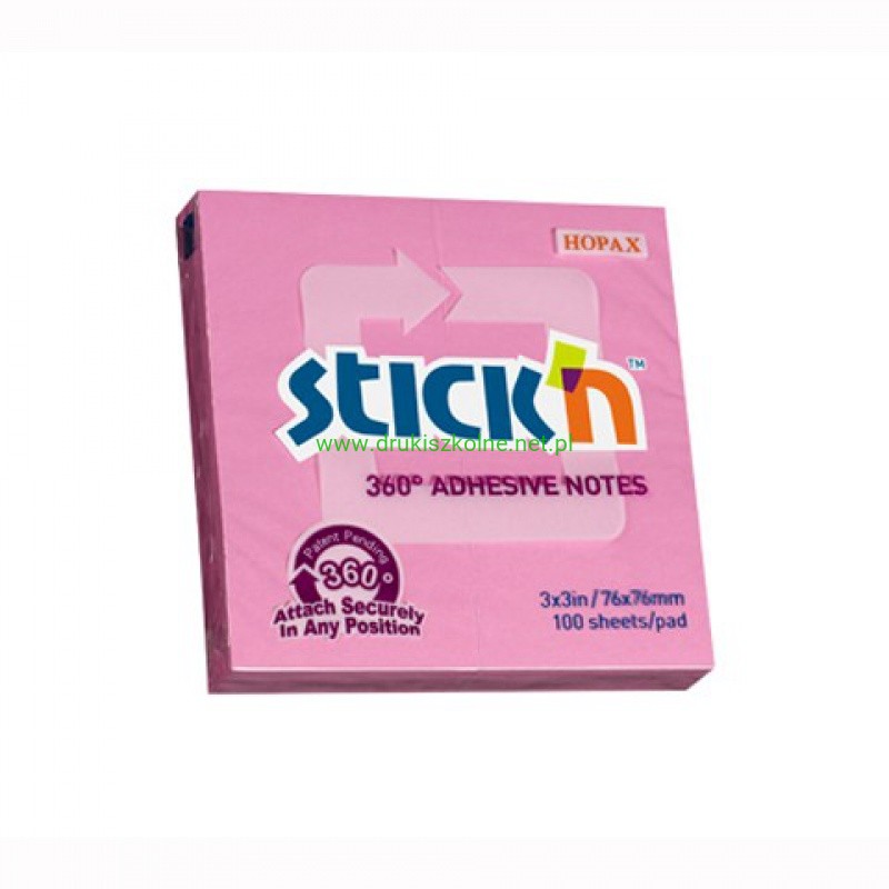 NOTES SAMOPRZ.76X76MM 360 STOPNI RÓŻOWY 100 KART.