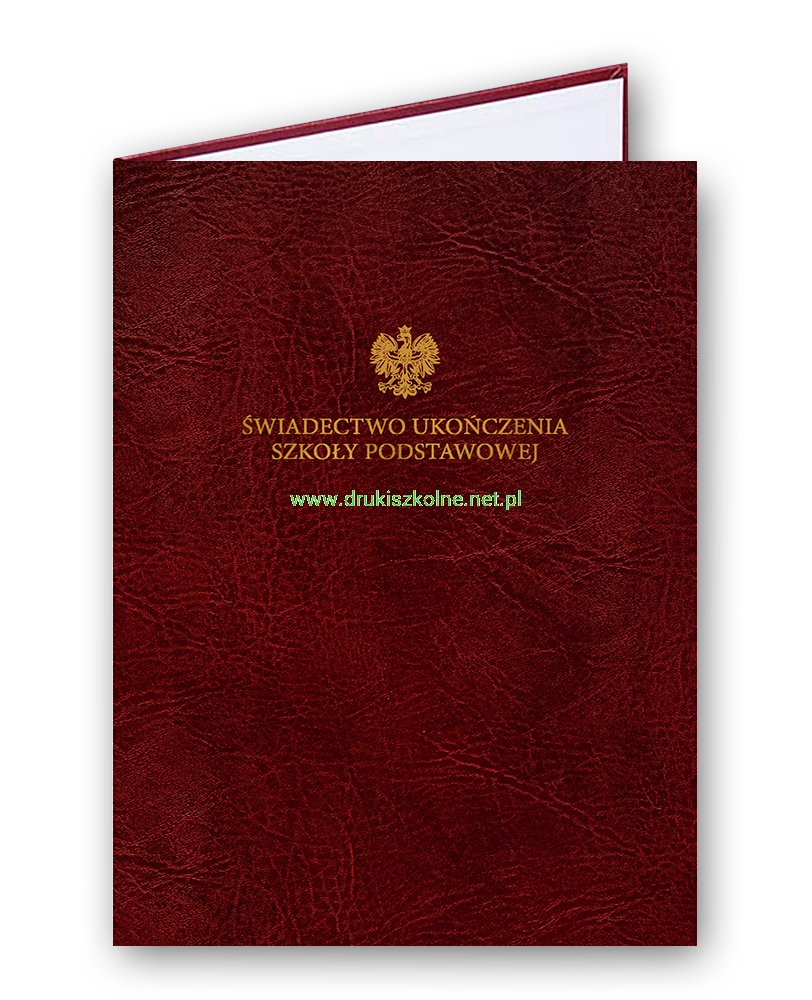 Okładka na dyplom, skóropodobna A4, złocona z napisem "Świadectwo Ukończenia Szkoły Podstawowej"
