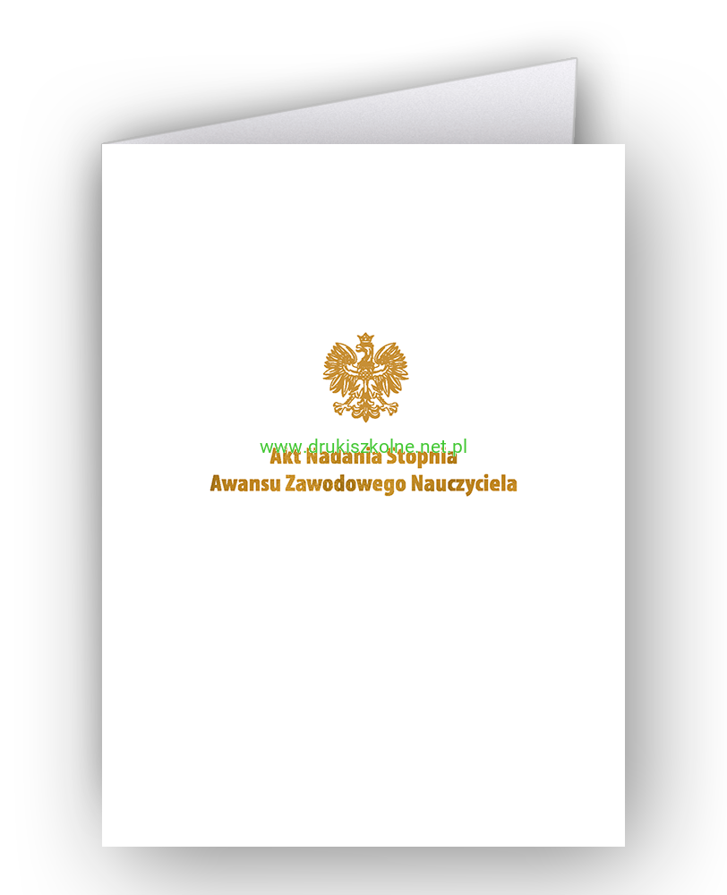 Okładka ozdobna kartonowa A4, złocona z napisem "Akt Nadania Stopnia Awansu Zawodowego Nauczyciela"