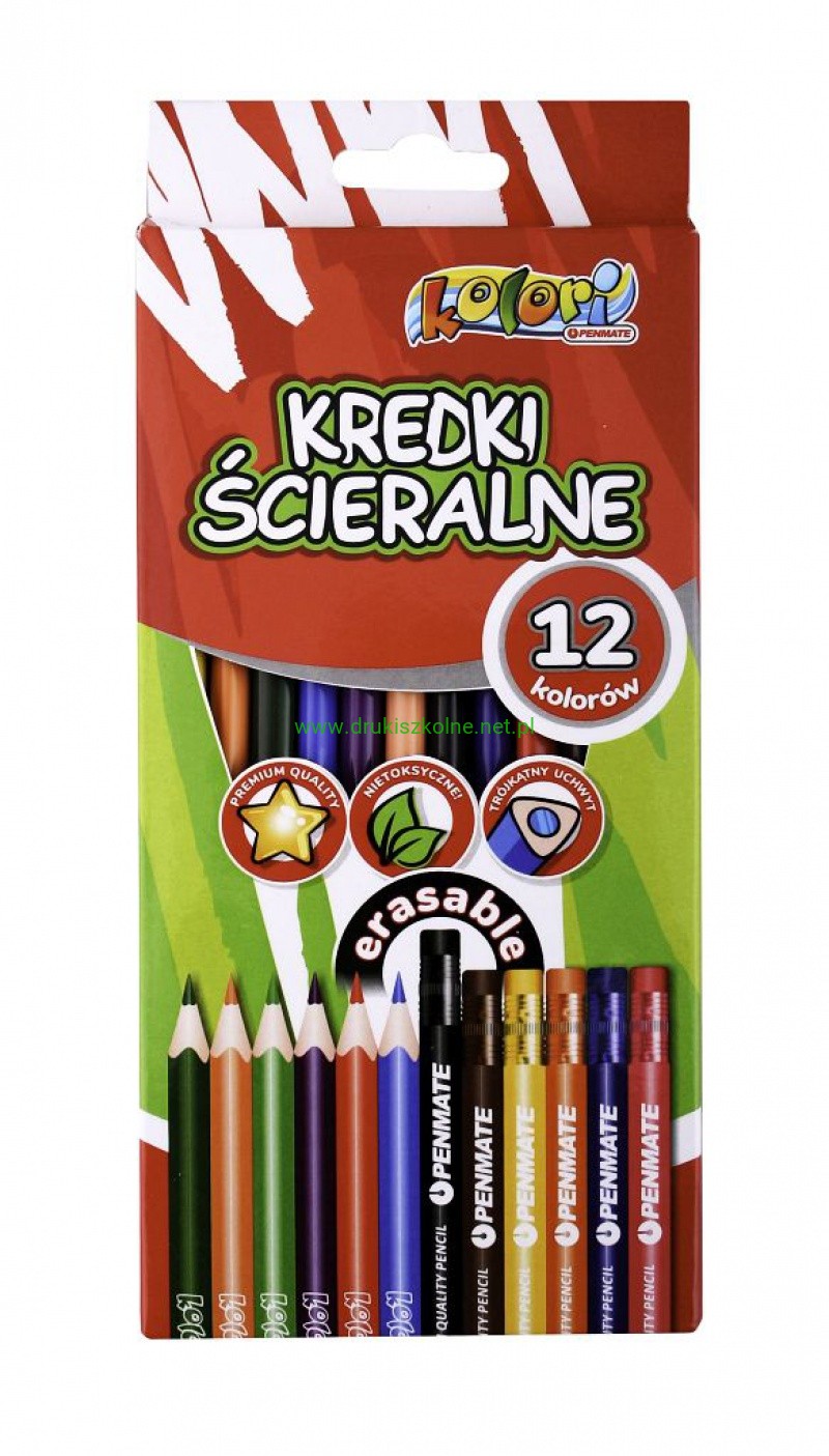 PENMATE KOLORI PREMIUM KREDKI OŁÓWKOWE TRÓJKĄTNE ŚCIERALNE 12 KOLORÓW