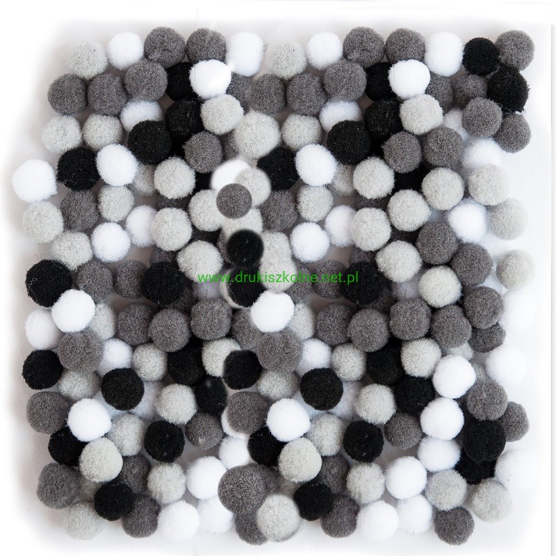 POMPONY POLIESTROWE 1cm MIX BIAŁO-CZARNY 120szt
