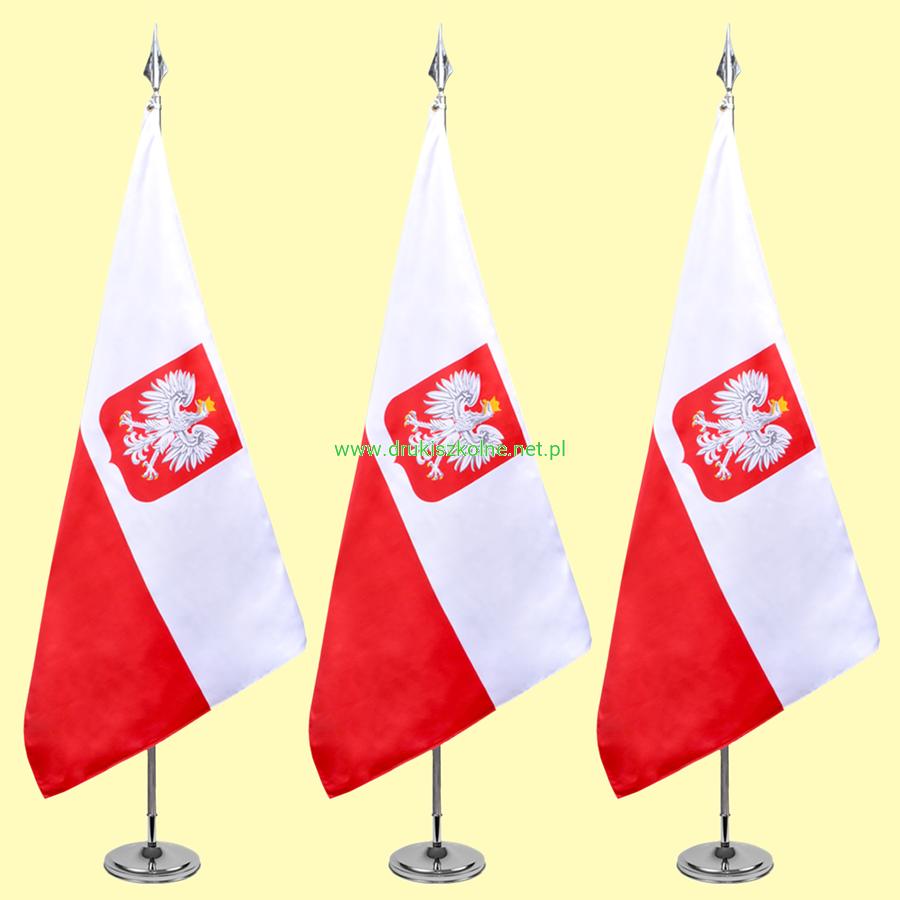 Polska Flaga Państwowa Sztandarowa Atłasowa z Godłem RP - różne rozmiary