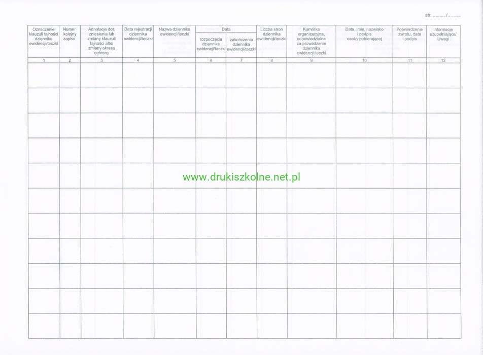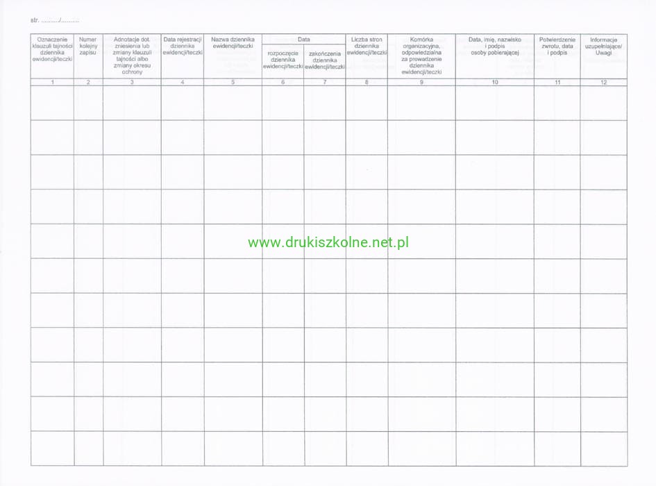 Rejestr dzienników, książek i teczek – kancelarii tajnej, format 34x22 cm, twarda skóropodobna oprawa, różne kolory okładek (wybrane kolory proszę podać w uwagach do zamówienia - w przypadku braku informacji o wyborze kolorów, wysyłamy w kolorach losowo wybranych. W przypadku braku któregoś koloru proponujemy inne kolory).