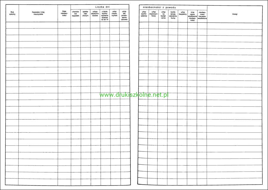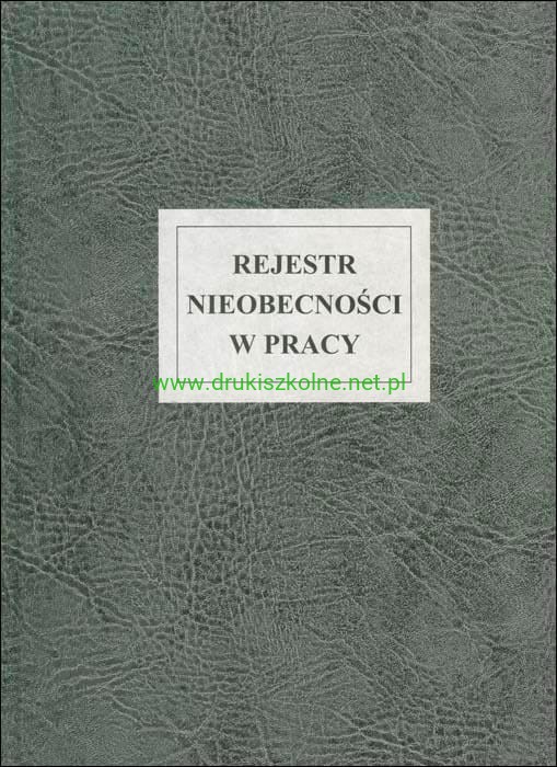 Rejestr nieobecności w pracy, twarda skóropodobna oprawa, A4 (192 str.), różne kolory okładek (wybrane kolory proszę podać w uwagach do zamówienia - w przypadku braku informacji o wyborze kolorów, wysyłamy w kolorach losowo wybranych. W przypadku braku któregoś koloru proponujemy inne kolory).