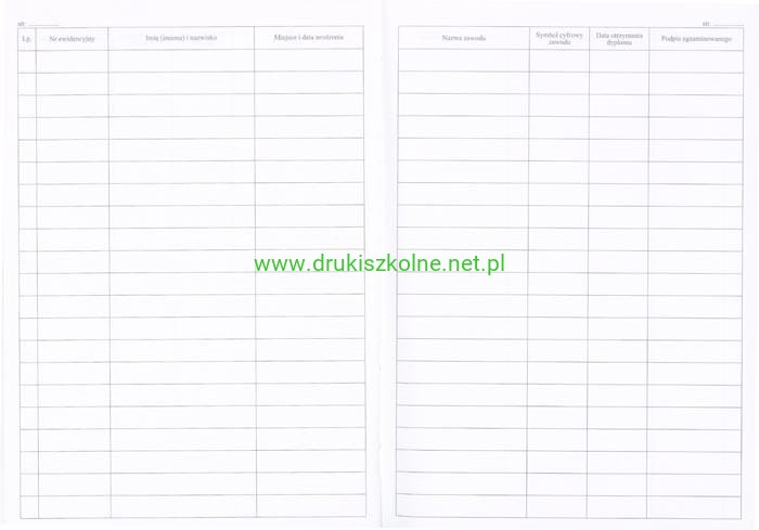 Rejestr wydanych dyplomów zawodowych, format A4, twarda skóropodobna oprawa, 192 str., różne kolory okładek (wybrane kolory proszę podać w uwagach do zamówienia - w przypadku braku informacji o wyborze kolorów, wysyłamy w kolorach losowo wybranych. W przypadku braku któregoś koloru proponujemy inne kolory).