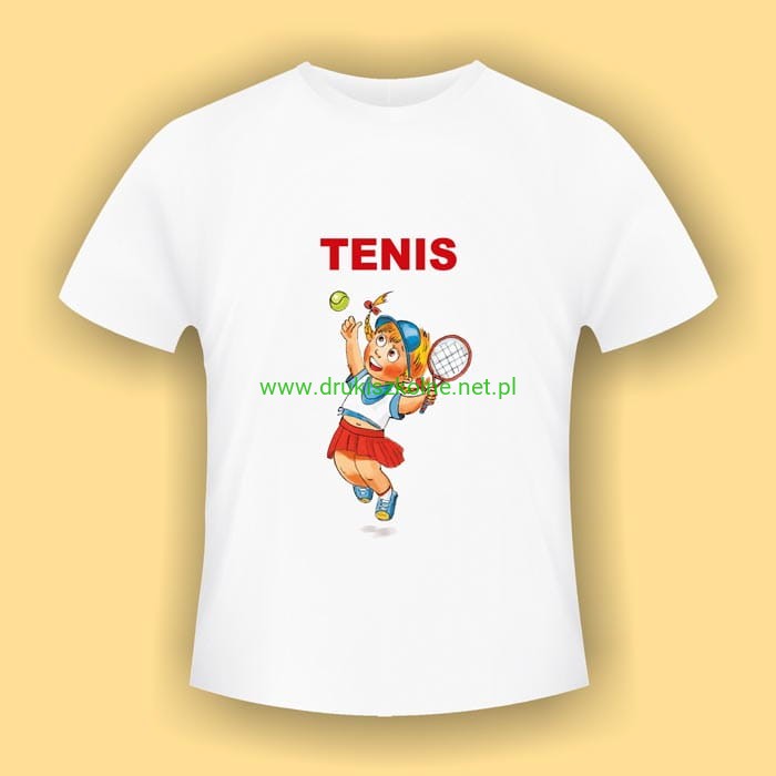 Tenis - biała koszulka bawełniana (t-shirt) z kolorowym nadrukiem
