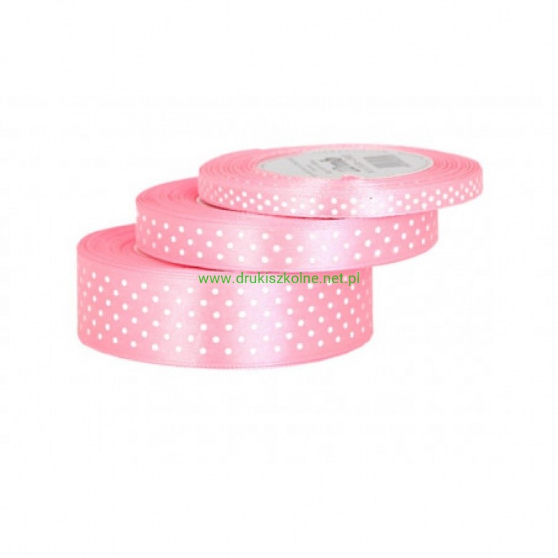 Wstążka satynowa w kropki 12mm/22mb różowa