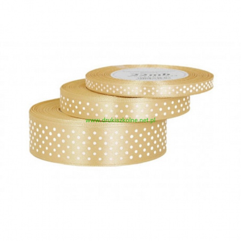 Wstążka satynowa w kropki 12mm/22mb złota