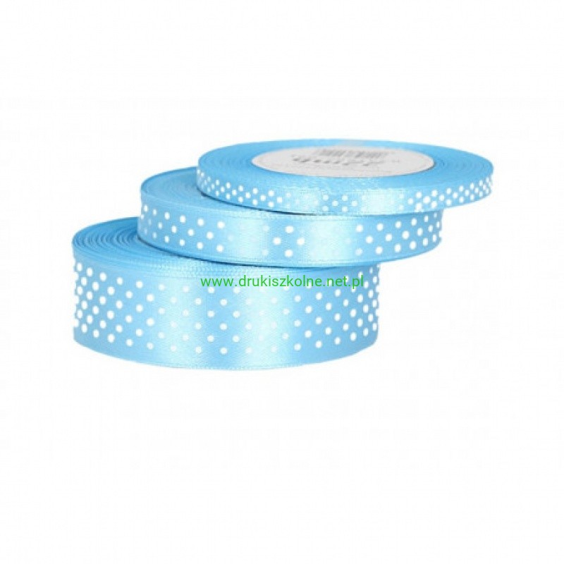Wstążka satynowa w kropki 25mm/22mb błękitna