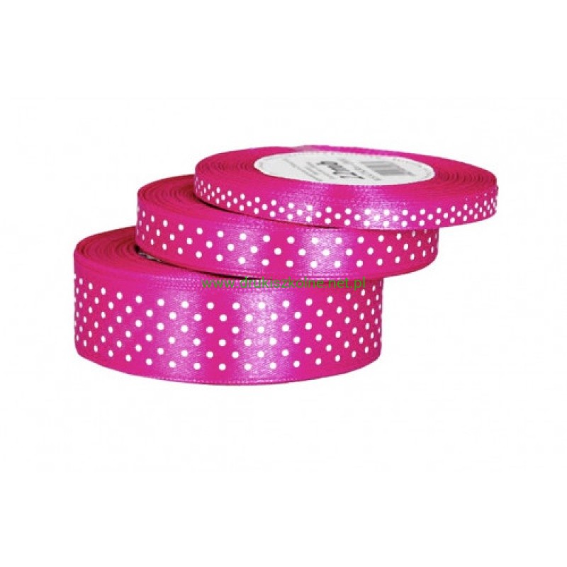 Wstążka satynowa w kropki 6mm/22mb, fuksja
