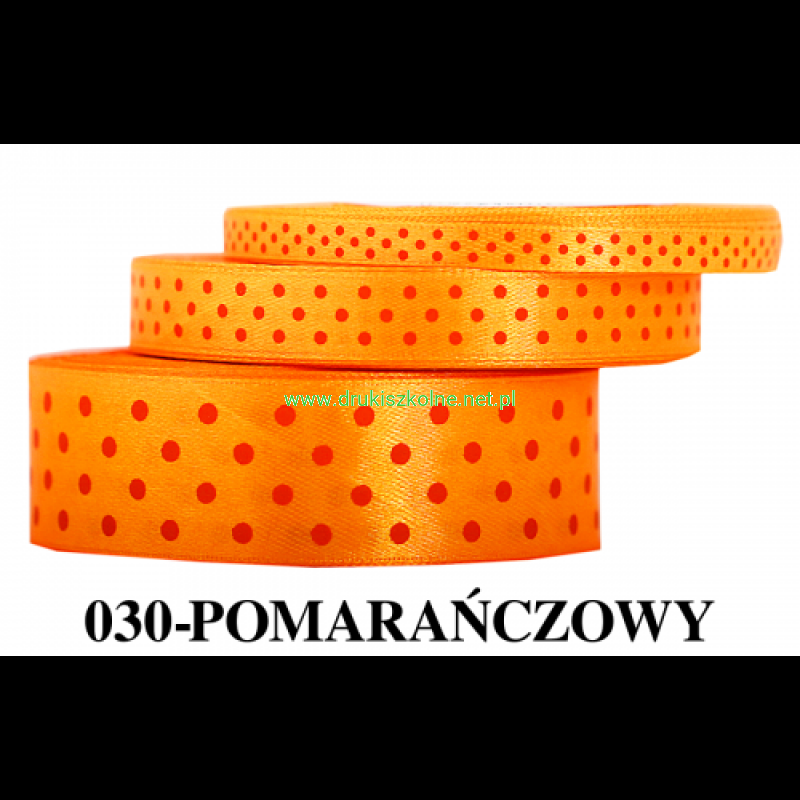 Wstążka satynowa w kropki pomarańczowe, 12mm/22mb