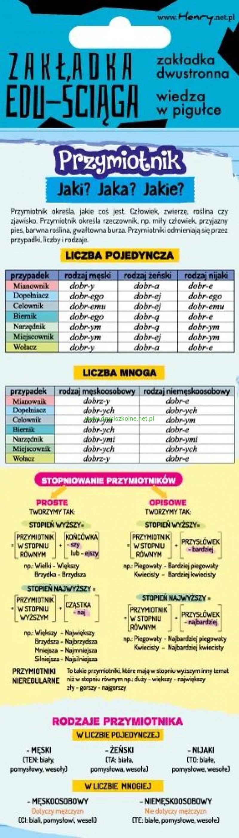 ZAKŁADKA EDU-ŚCIĄGA PRZYMIOTNIKI,ZAIMKI I LICZEBN.