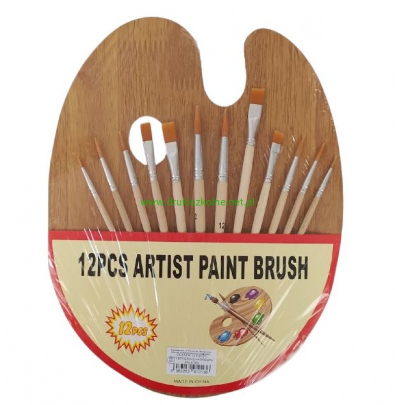 ZESTAW 12 PĘDZLI ARTYSTYCZNYCH+DREWNIANA PALETKA