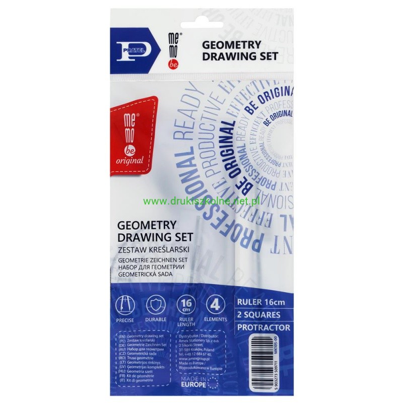 ZESTAW KREŚLARSKI MEMOBE BY PRATEL Z LINIJKĄ 16cm