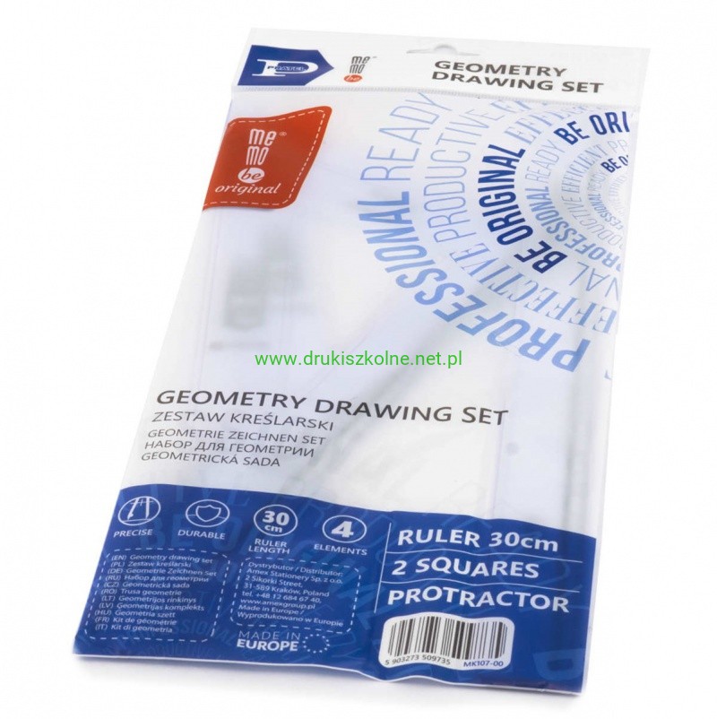 ZESTAW KREŚLARSKI MEMOBE BY PRATEL Z LINIJKĄ 30CM.