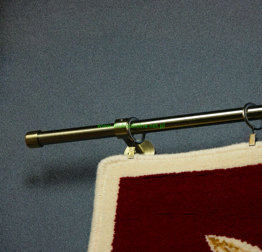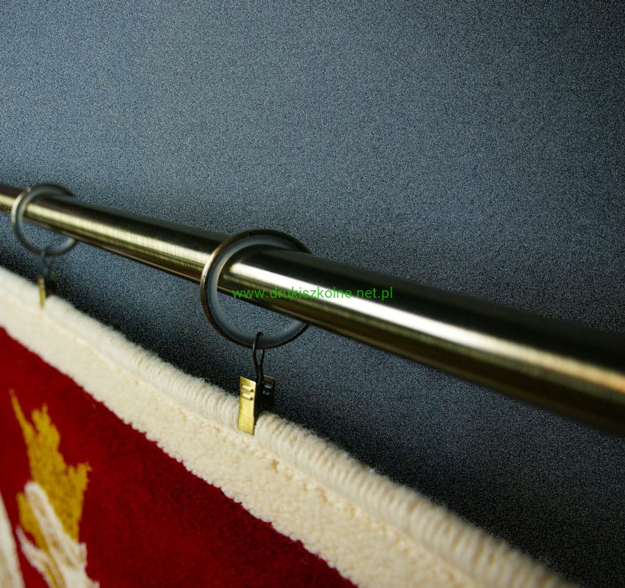 Zawiesie Ścienne do Gobelinu z Godłem Polski lub ekspozycji Sztandaru, Kilimu Ozdobnego etc. (szerokość - 1 m) - Zawiesie umożliwia efektowną ekspozycję eleganckiego Gobelinu Z Godłem, Sztandaru lub Ozdobnego Kilimu. Zawiesie wykonano z rurki mosiężnej o długości 1 m i średnicy 20 mm oraz elementów mosiężnych umożliwiających prosty montaż całego zestawu na ścianie. Wszystkie elementy są regulowane co umożliwia dostosowanie zawiesia do ekspozycji wyrobów o różnej szerokości. Polecamy do wykorzystania w gabinetach, izbach pamięci, salach obrad, szkołach, urzędach etc. Zawiesie do Gobelinu to ekskluzywny produkt najwyższej jakości.