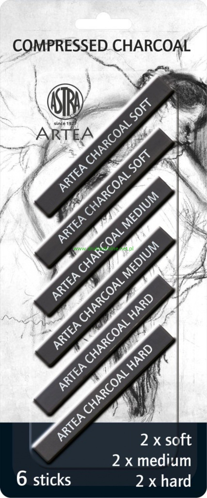 Zestaw węgli prasowanych Astra Artea 6 sztuk blister, 2 medium, 2 hard, 2 soft - czarny